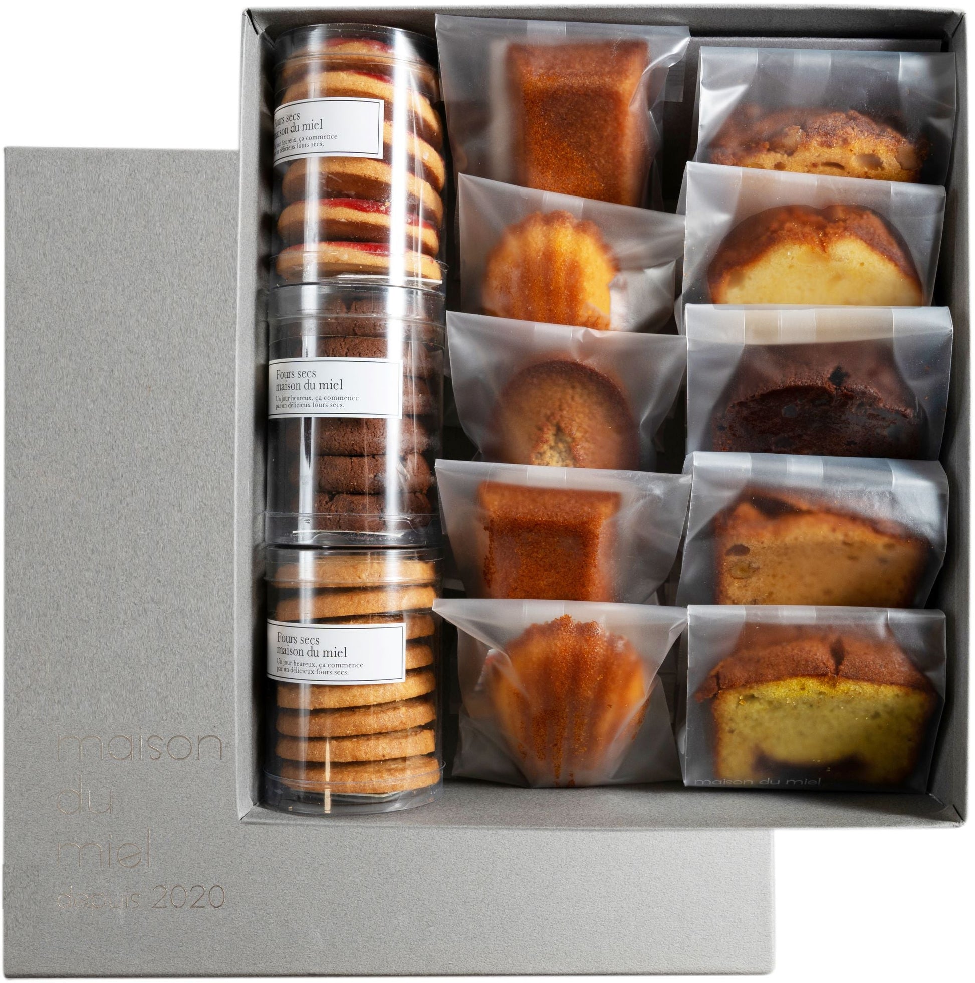 | 原材料名 | マドレーヌ】卵、バター、小麦粉、砂糖、はちみつ(岐阜県産)、ごま油、レモン果皮/ベーキングパウダー 【フィナンシェ】バター、卵、砂糖、アーモンド、小麦粉、はちみつ(岐阜県産)/ベーキングパウダー 【フィナンシェ・ピスターシュ】バター、卵、砂糖、アーモンド、ピスタチオパウダー、ピスタチオペースト、小麦粉、はちみつ(岐阜県産)/ベーキングパウダー 【ケーク・ピスタチオ】砂糖、卵、バター、小麦粉、グリオットチェリー、ピスタチオパウダー、ピスタチオペースト、マジパンローマッセ/ベーキングパウダー 【ケーク・ショコラ】卵、レーズン、チョコレート、砂糖、バター小麦粉、アーモンド、ココア、洋酒/ベーキングパウダー【ケーク・マカダミア】砂糖、卵、バター、小麦粉、マカダミア、マジパンローマッセ、ココナッツ/ベーキングパウダー、【ケーク・キャラメル・ノワ】卵、砂糖、バター、小麦粉、マジパンローマッセ、くるみ、生クリーム/ベーキングパウダー【赤い実のサブレ】小麦粉、バター、砂糖、フランボワーズ、卵、塩/ペクチン(リンゴ由来)、酸味料【サブレ・オ・ショコラ】砂糖、小麦粉、バター、チョコレート、カカオパウダー、卵黄、重曹、塩【メープル・フォルテ】小麦粉)、バター、グラニュー糖、メープルシュガー、卵、塩 |